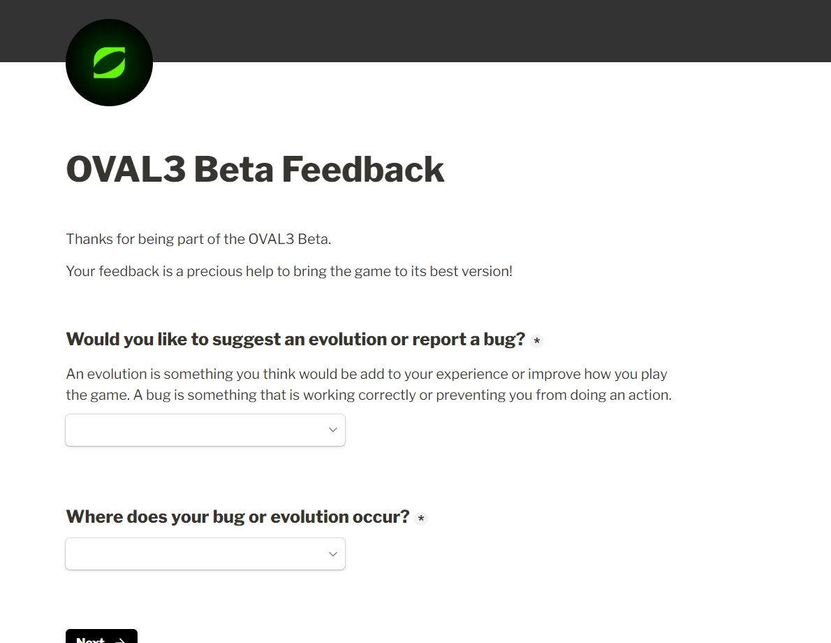 Votre avis est inestimable pour la poursuite du développement d'OVAL3. En partageant vos réflexions sur les mécanismes de jeu, l'interface utilisateur, les fonctionnalités de gestion d'équipe, et bien plus encore, vous fournissez à l'équipe de développement une compréhension claire de ce qui fonctionne bien et de ce qui pourrait être amélioré. Vos idées les aident à affiner les mécanismes du jeu, l'équilibre, et la conception générale, en veillant à ce que chaque aspect soit en accord avec vos préférences et vos attentes.