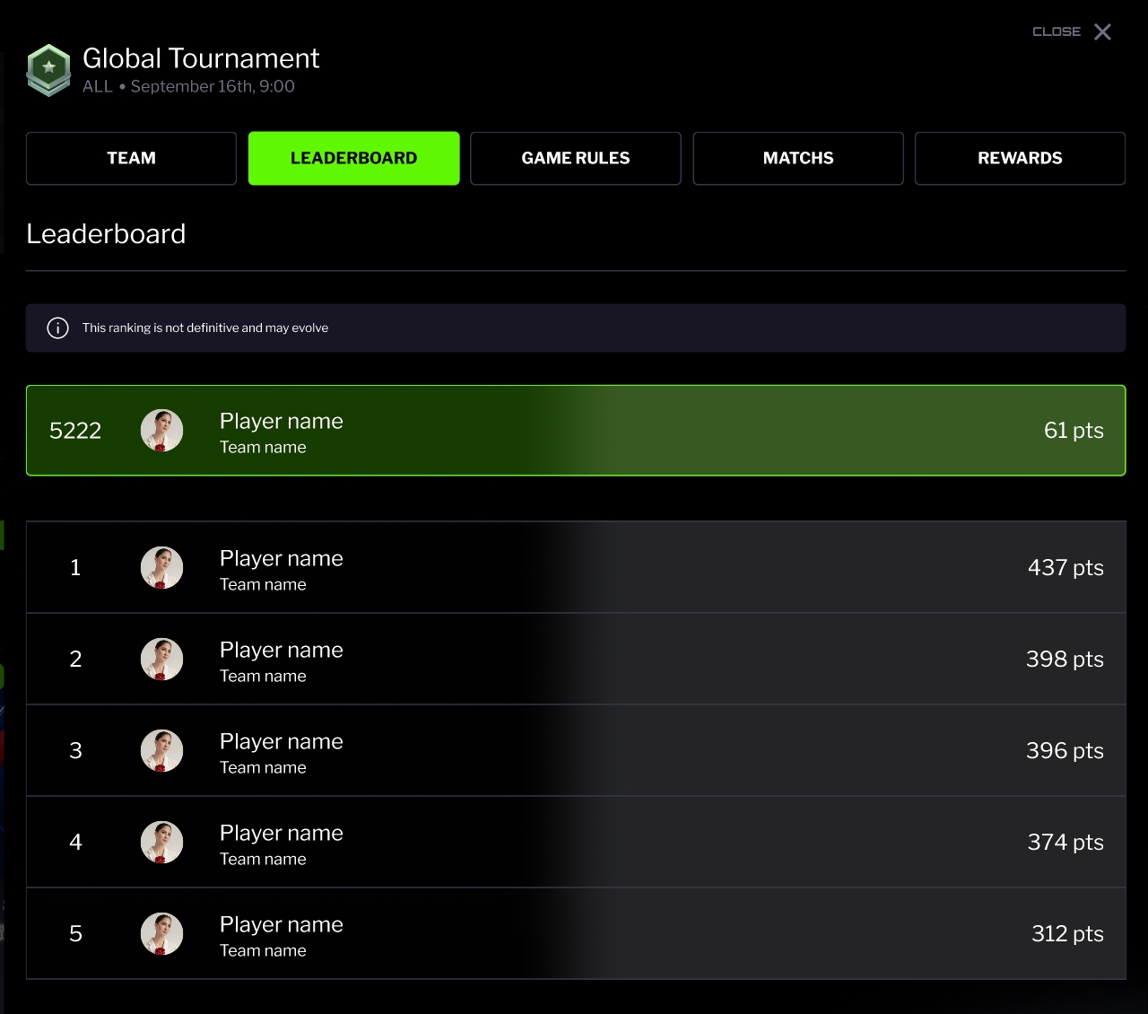 En fonction des performances des joueurs sur le terrain dans la vraie vie, ils auront un Score de Joueur, et le total de votre équipe vous classera dans un classement avec tous les autres gestionnaires du monde qui participent à cette compétition.