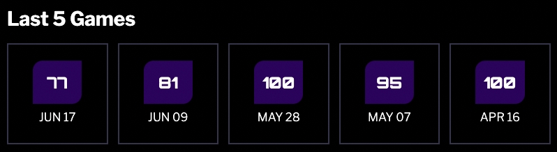 Les notes du joueur servent de point de référence pour comprendre les forces et les faiblesses d'un joueur en fonction de ses performances historiques passées. Il représente une moyenne historique et pondérée des performances d'un joueur sur ses 5 derniers scores de matchs.